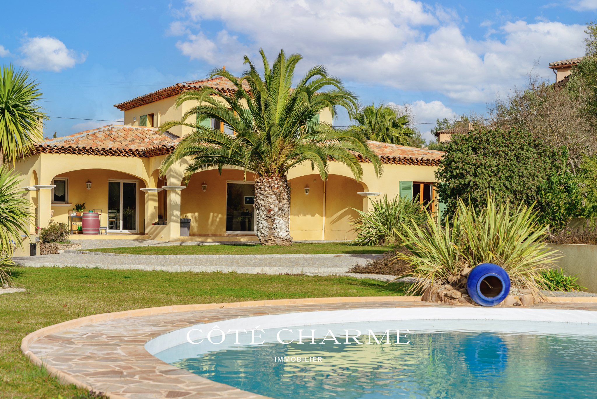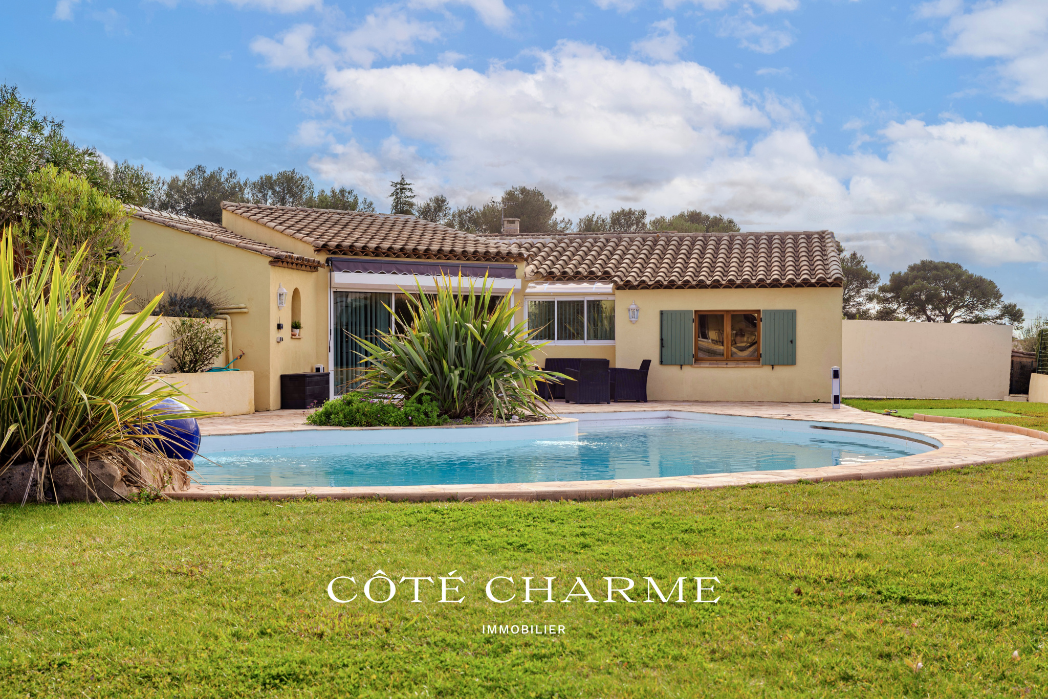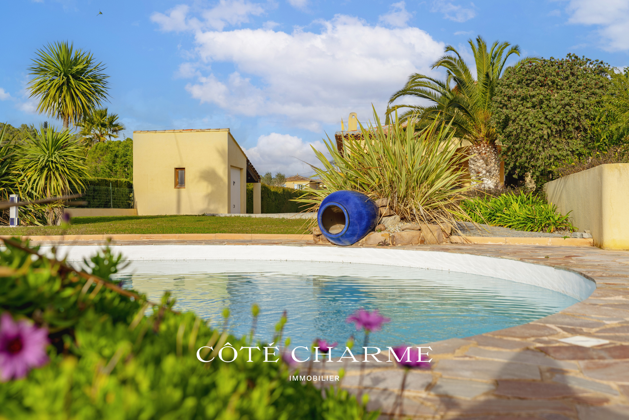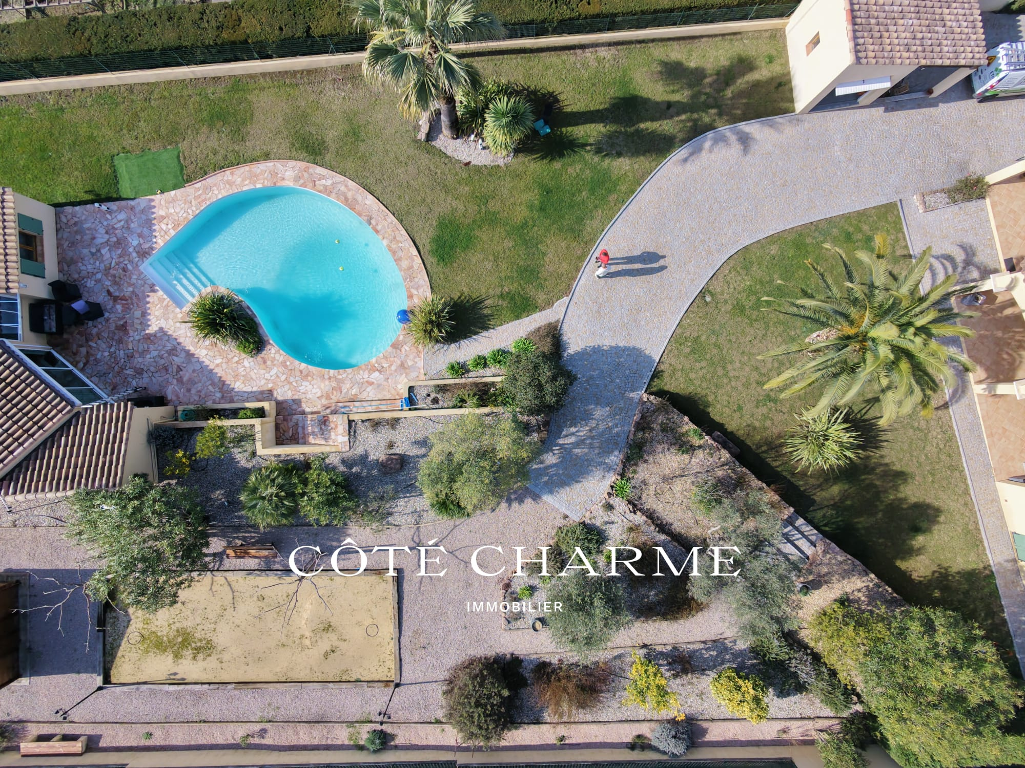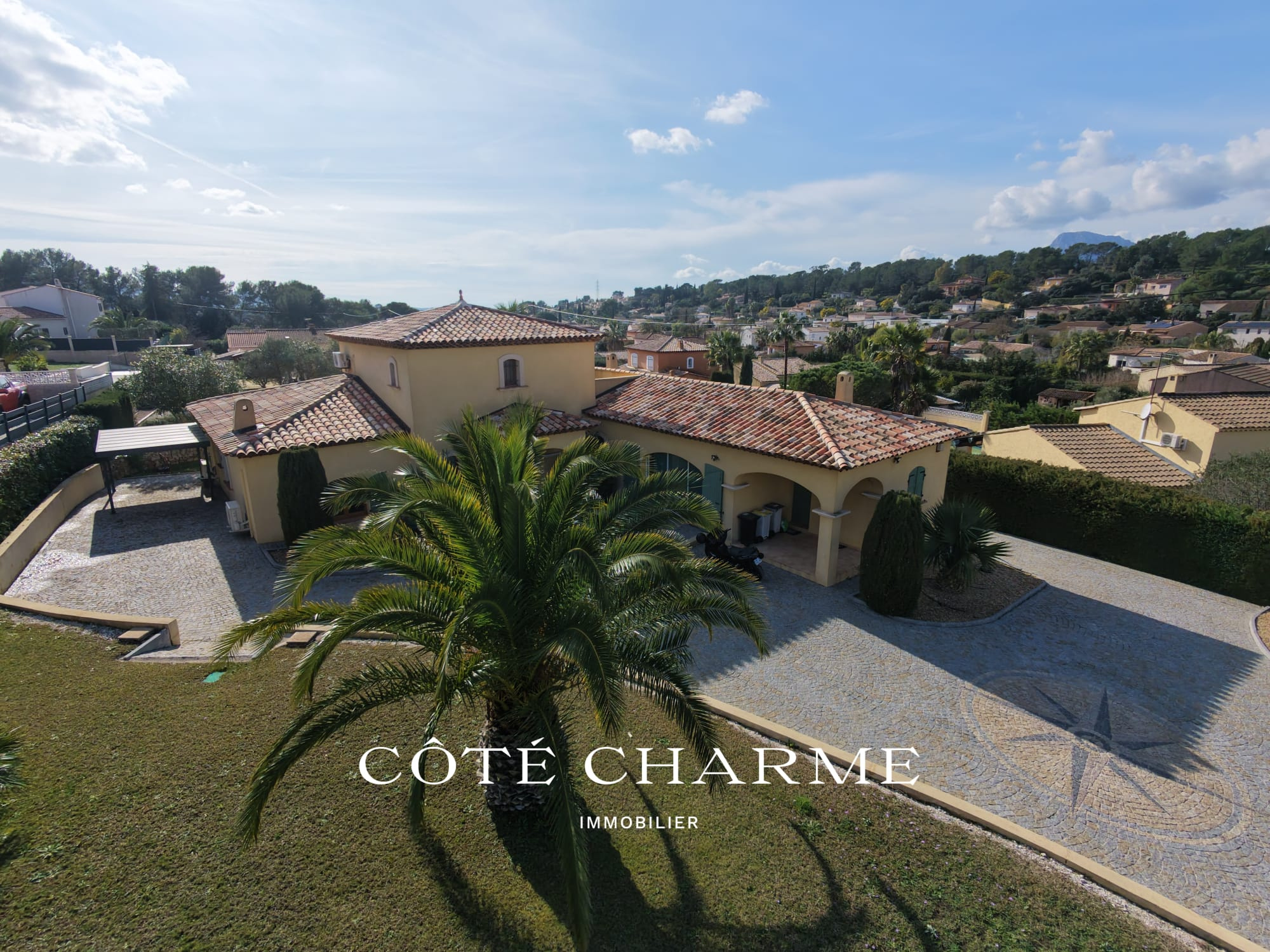 Implantée dans un environnement calme et verdoyant, la propriété développe une surface totale d’environ 210 m², dont 170 m² pour la maison principale, offrant une configuration idéale pour une vie de famille ou pour un couple en quête de soleil et de douceur de vivre méditerranéenne.