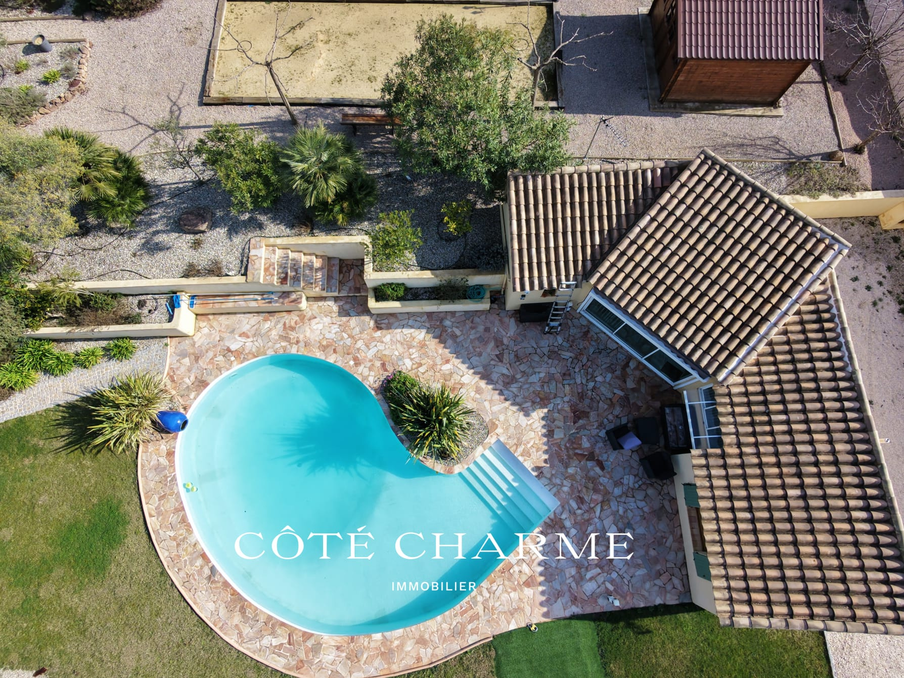 À l’extérieur, les espaces ont été pensés pour la️ le plaisir et la convivialité. Vous y découvrirez une grande terrasse ombragée avec cuisine d’été, un vaste jardin, ainsi qu’une piscine, idéale pour se détendre et se rafraîchir au rythme des cigales.