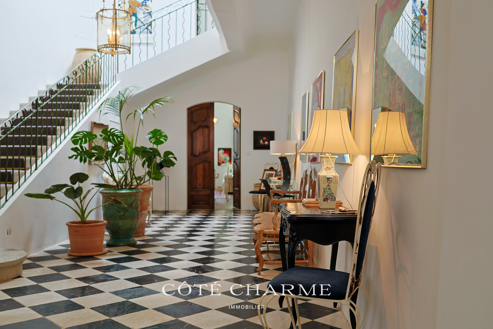 Dès l'entrée on tombe sous le charme du spacieux hall avec son sol en marbre à damier noir et blanc