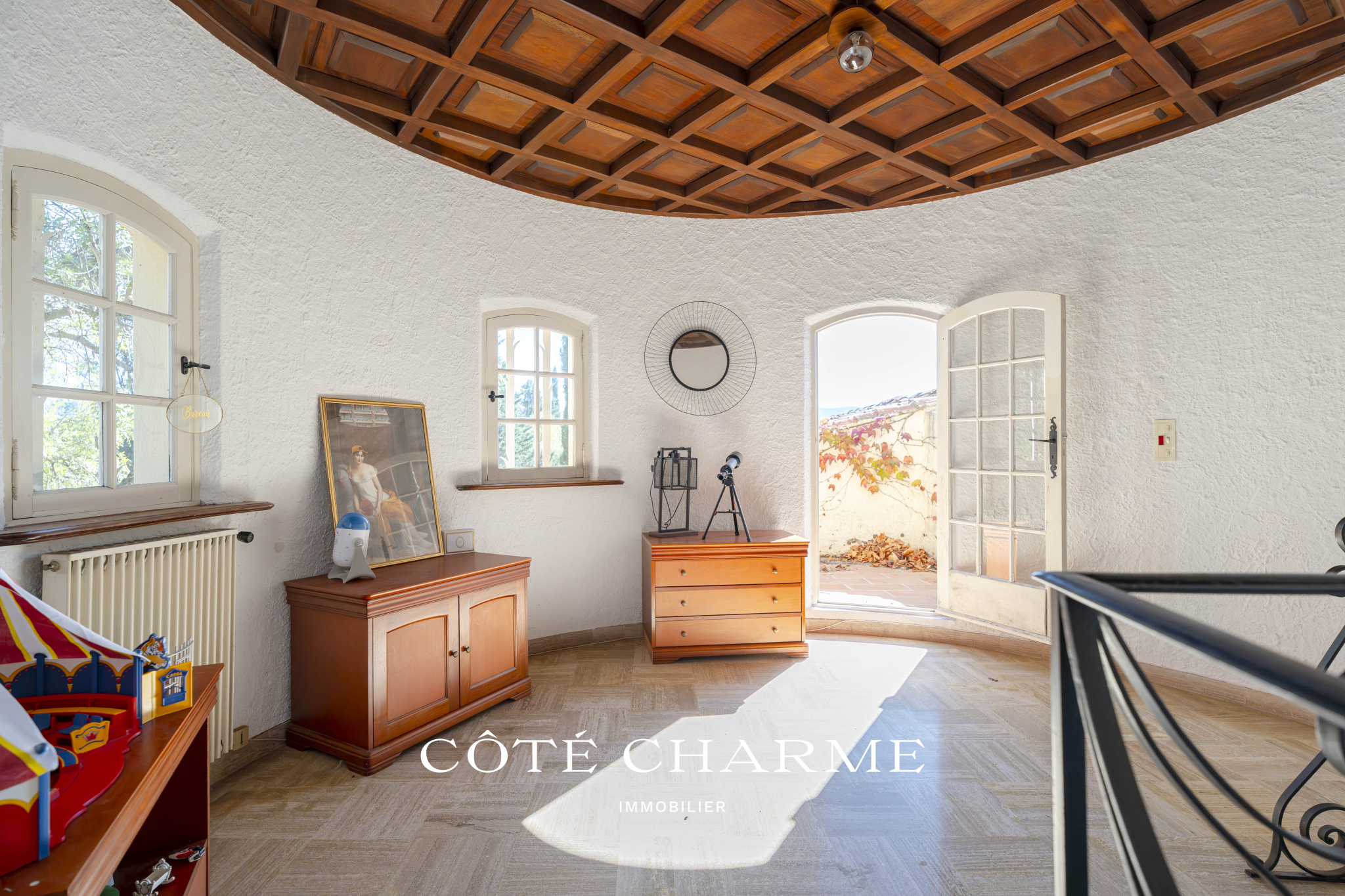 À l’étage, dans le charmant pigeonnier, se trouvent, un bureau, une chambre supplémentaire avec salle d’eau, un espace de jeu ou cinquième chambre selon vos besoins.