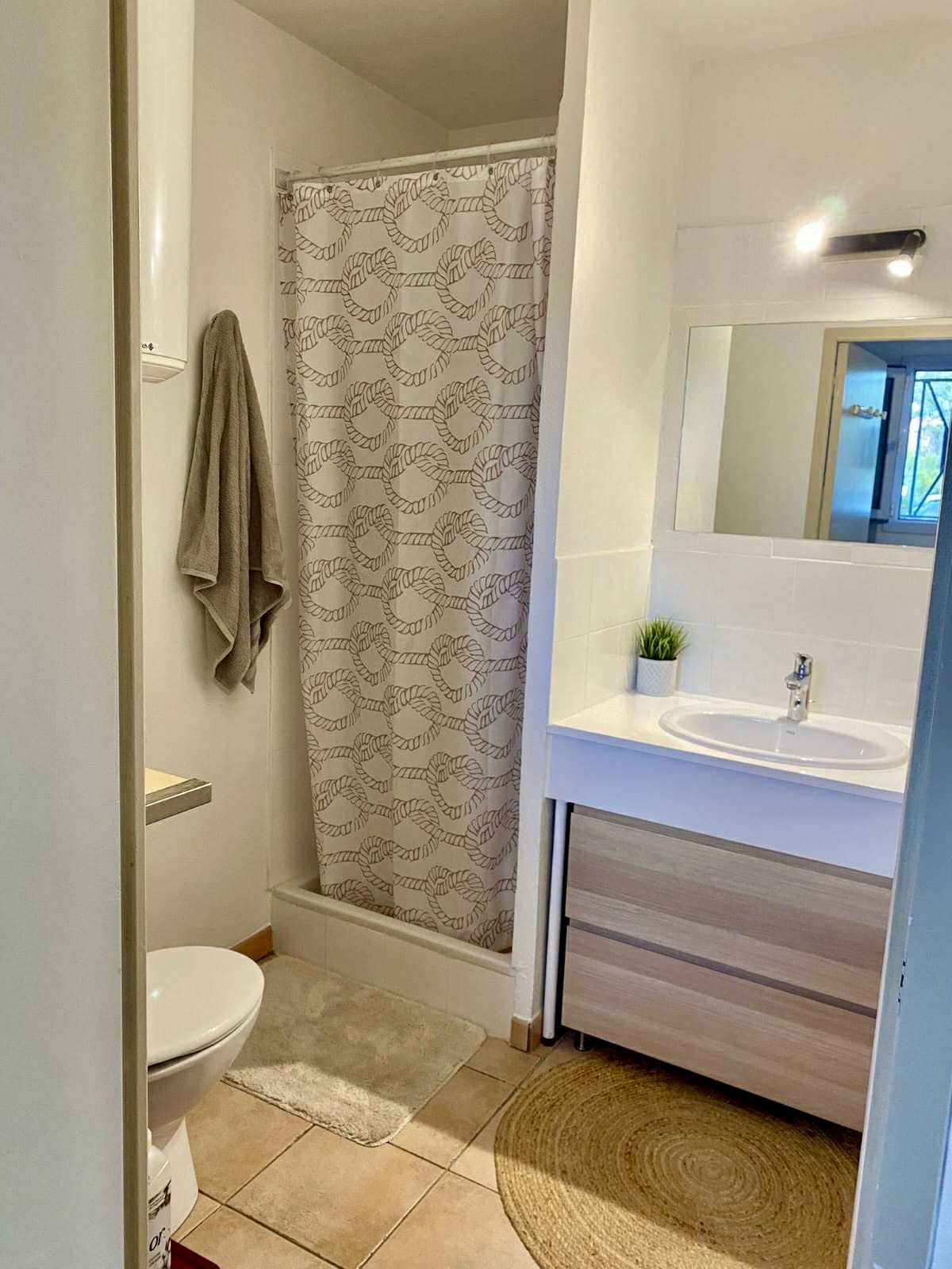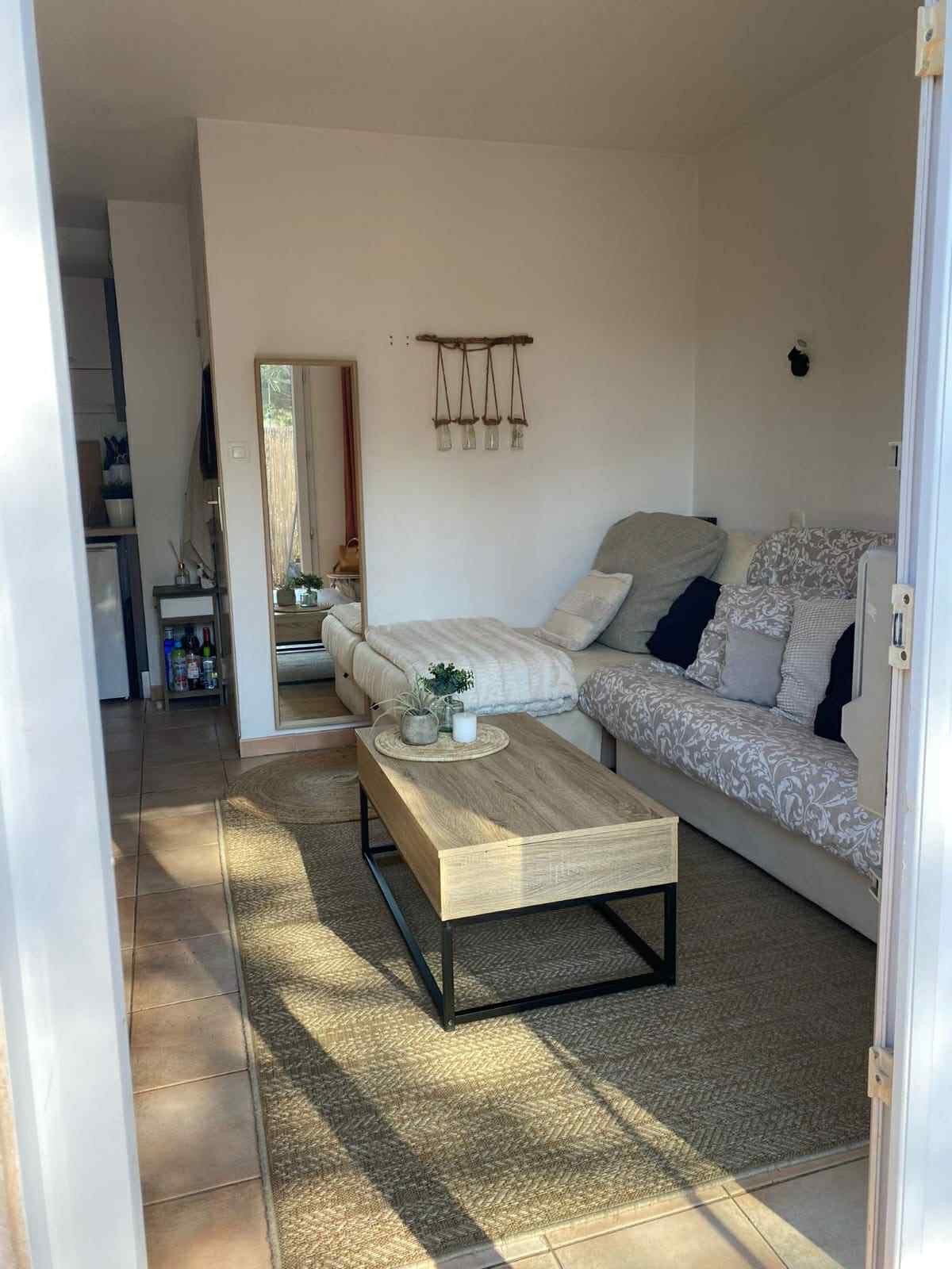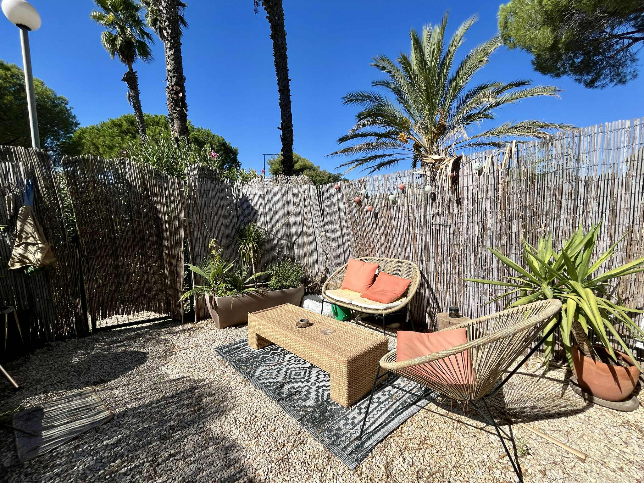 Il se compose d'une pièce à vivre lumineuse avec coin cuisine équipée, une salle d'eau avec WC et côté extérieur, un jardin de 17,55m² exposé Sud-Ouest pour profiter de la douceur du climat méditérranéen.